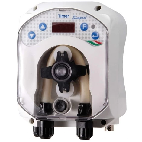 Pompa peristaltica SIMPOOL TIMER by AQUA facilita la disinfezione della piscina, in quanto automatizza il dosaggio dei prodotti chimici tramite un programma giornaliero e settimanale.