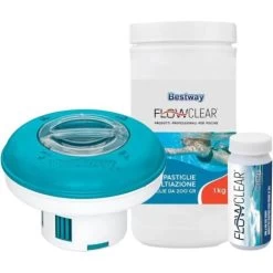 Non perdere questa super occasione per avere a portata di mano il necessario per mantenere pulita l’acqua della tua piscina e controllarne il suo stato. In questo kit troverai un dispenser di cloro Bestway, 1 kg di pastiglie Marten Pool da 200GR blisterate singolarmente e 50 strisce test Bestway. Dispenser cloro, 1 pezzo: