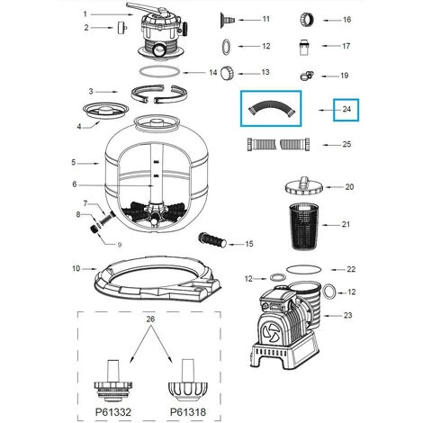 Tubo corto Bestway con codice P03840 (ex P61982) da 39 cm, con ghiere filettate da 58 mm. Questo ricambio è compatibile con i filtri a sabbia Bestway con codice 58495,58499,58400.