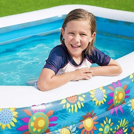 1 x Piscina Gonfiabile Fuoriterra Fiori 3 Anelli Rettangolare 229x152x56cm Giardino