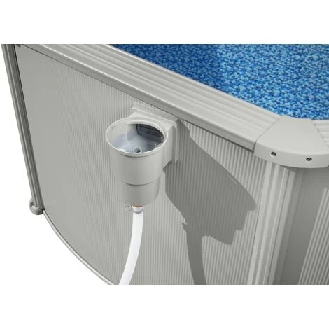 - Skimmer integrato per la superficie della piscina e sistema di filtrazione per rimuovere i detriti e mantenere l’acqua pulita