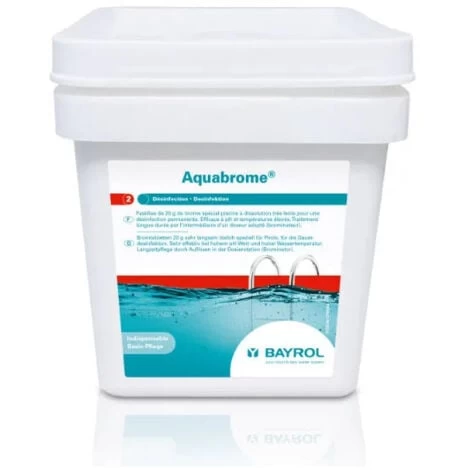 - Compresse di bromo a lenta dissoluzione (20 g) per una disinfezione lenta e supplementare, adatte a tutte le durezze dell’acqua. Il bromo assicura un trattamento dell’acqua delicato e inodore.