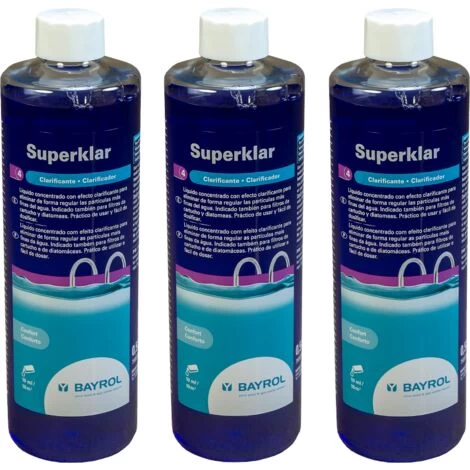 Confezione 3 unità Superklar. Chiarificante liquido. BAYROL. Contenitore da 0,5 l. Rif. 7595329.