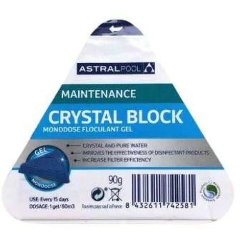 Flocculante in gel monodose da 90 grammi, da utilizzare ogni 15 giorni. Un dosaggio copre piscine fino a 60 m3 dacqua. Da inserire direttamente nello skimmer.