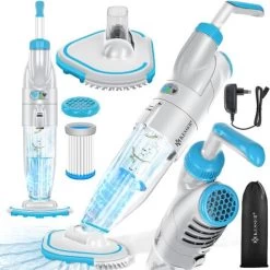 Aspirapolvere per piscina KESSER con un’elevata potenza di aspirazione e potente batteria al litio di lunga durata, con impostazione della modalità standard e turbo, spazzola resistente in nylon robusto, collegabile all’asta telescopica.