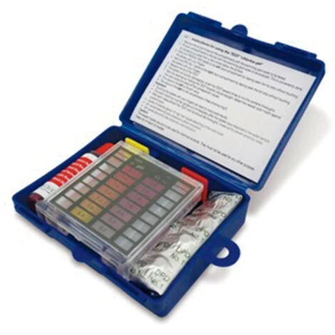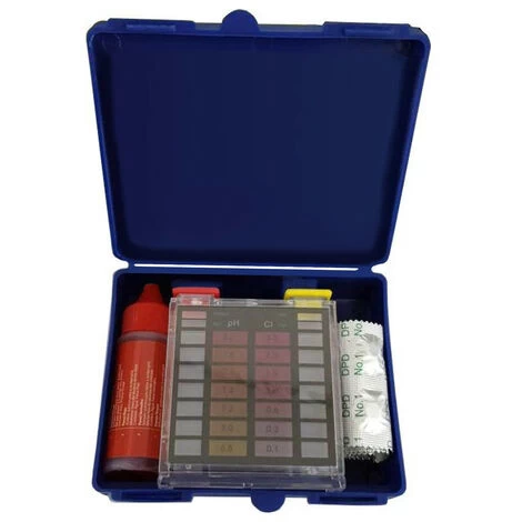Kit per il test del cloro e del pH Kokido. Con questo kit avrete la manutenzione necessaria per la vostra piscina o idromassaggio. è possibile testare in modo rapido e semplice i livelli di pH, cloro e bromo dell’acqua. Il kit è composto dalle soluzioni e dal contenitore per ogni indicatore. è facile da leggere in base al colore per determinare lo stato dell’acqua.