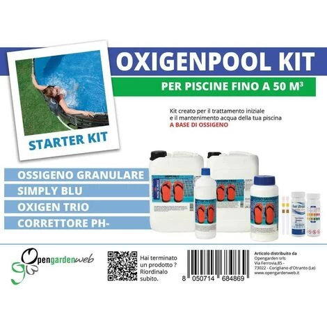 Ideale per tutti i tipi di piscine fuoriterra ed interrate, il nostro OXIGENPOOL KIT è studiato per il trattamento iniziale ed il mantenimento per piscine fino a 100 metri cubi.
