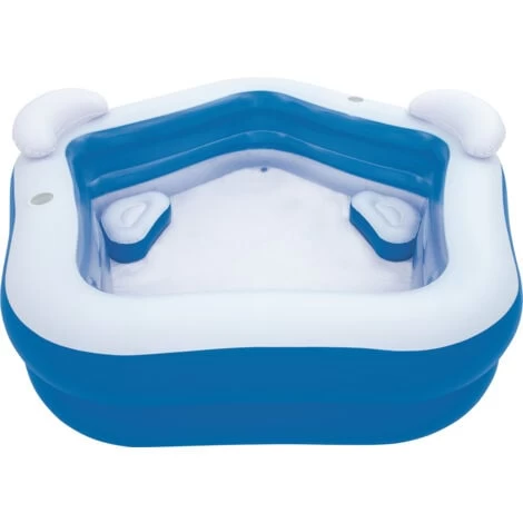 Piscina gonfiabile per famiglie con struttura a due anelli uguali. Questo modello è dotato di due cuscini e due poggiatesta, oltre a due sottobicchieri per godersi la propria bevanda preferita mentre ci si rinfresca. Si gonfia e si sgonfia facilmente. Quando l’estate è finita, è possibile svuotarlo facilmente grazie alle due valvole a svuotamento rapido.nnCaratteristiche:n-Due valvole di sgancio rapido ad incastro.n-Vinile resistente testato 2 anelli uguali Ampie pareti laterali.n-Include 2 portabicchieri, 2 cuscini e 2 poggiatesta.n-Toppa di riparazione extra resistente inclusa.n-Contenuto massimo d’acqua: 575 L (152 gal).n-Rilasciare l’acqua dalla piscina con la valvola di scarico facile da usare!n-Contenuto: Una piscina, una toppa di riparazione resistente.