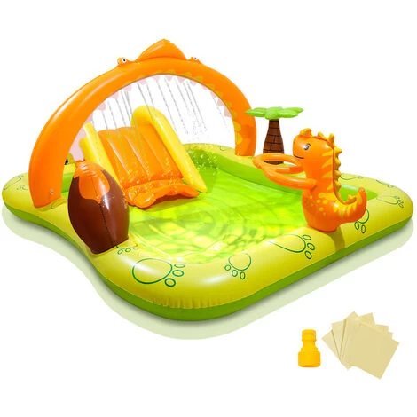 Centro giochi Jurassic Playground – Piscina pop-up per bambini, piscina gonfiabile con scivolo, per bambini all’aperto, giardino, cortile, 3+ anni.