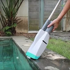 Outsunny Aspirapolvere Per Piscina Portatile Cordless Con Palo Telescopico, 210x17x7cm, Bianco E Blu