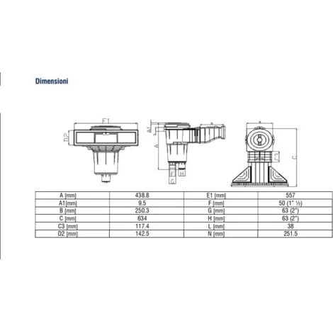 Flusso nominale: 7 m3/h con collegamento da 50 e 10 m3/h con collegamento da 63