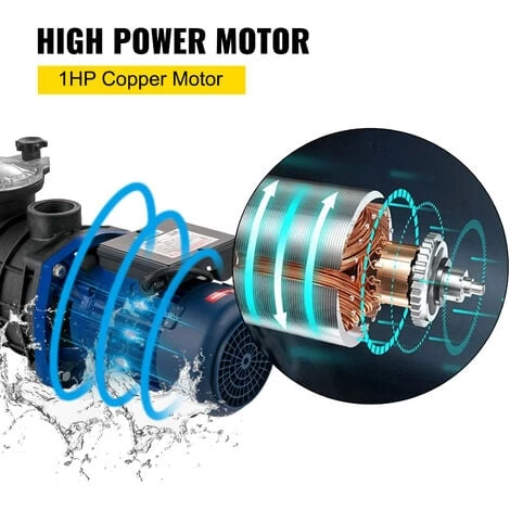 - 【MOTORE IN RAME DA 1 HP】 – La pompa della piscina ha un motore in rame puro da 1 HP per raggiungere un funzionamento potente e stabile per fornire un flusso elevato e un sollevamento della prevalenza. Il potente motore può garantire un funzionamento regolare e un ambiente silenzioso.