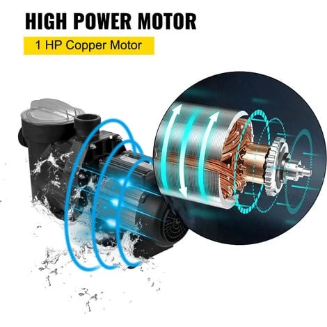 - 【MOTORE IN RAME DA 1 HP】 – La pompa della piscina ha un motore in rame puro da 1 HP per raggiungere un funzionamento potente e stabile per fornire un flusso elevato e un sollevamento della prevalenza. Il potente motore può garantire un funzionamento regolare e un ambiente silenzioso.